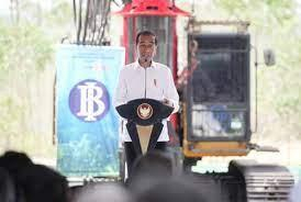 IBU KOTA NUSANTARA, BANPOS - Presiden Jokowi melakukan groundbreaking atau peletakan batu pertama Kompleks Perkantoran Bank Indonesia (BI) di Ibu...