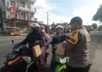 Bagikan Takjil, Personil Polsek Cikande Imbau Pengguna Jalan Utamakan Keselamatan